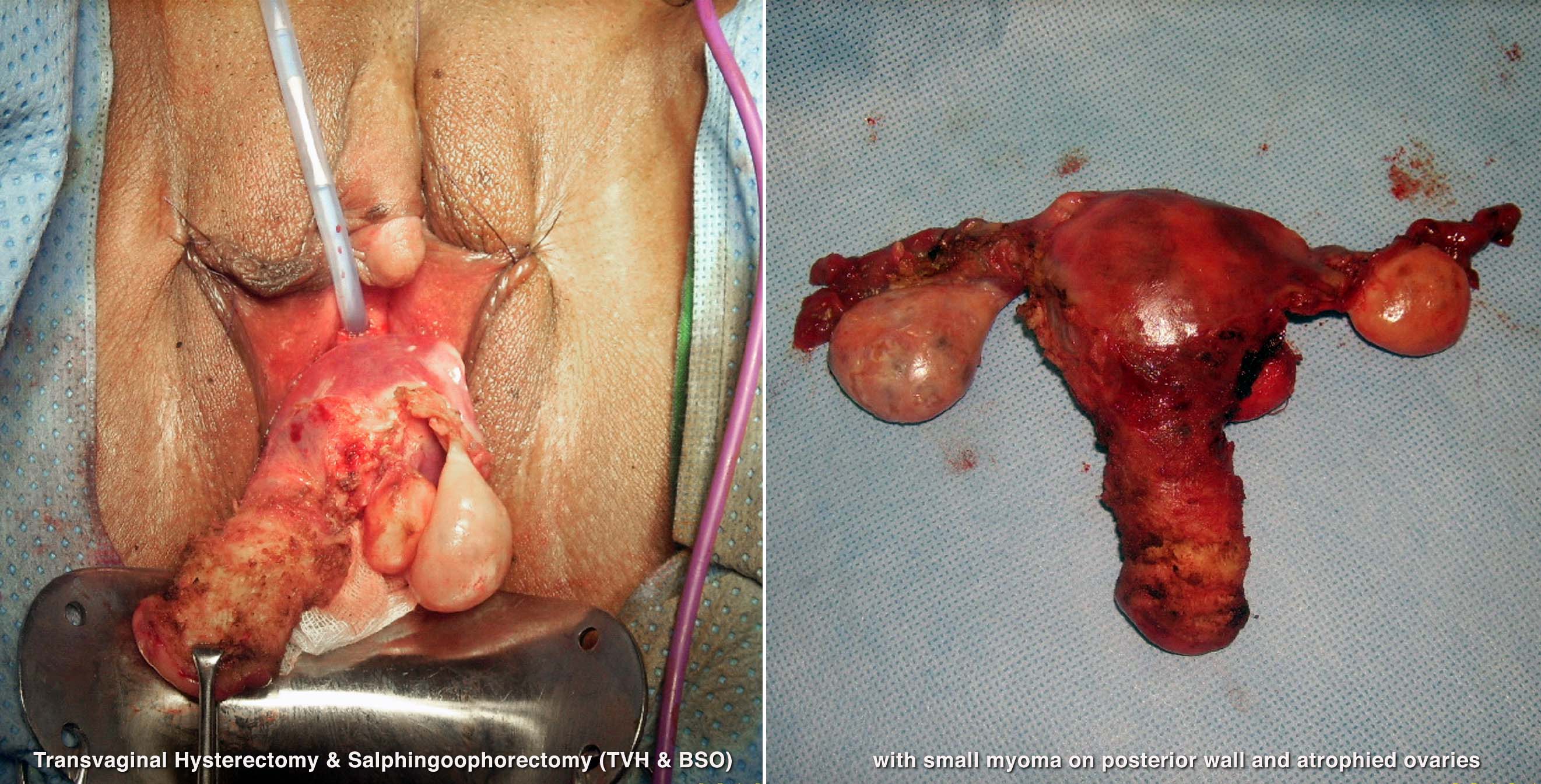The advantages of a transvaginal hysterectomy (TVH) with simultaneous bilateral salpingo-oopherectomy (BSO) are: